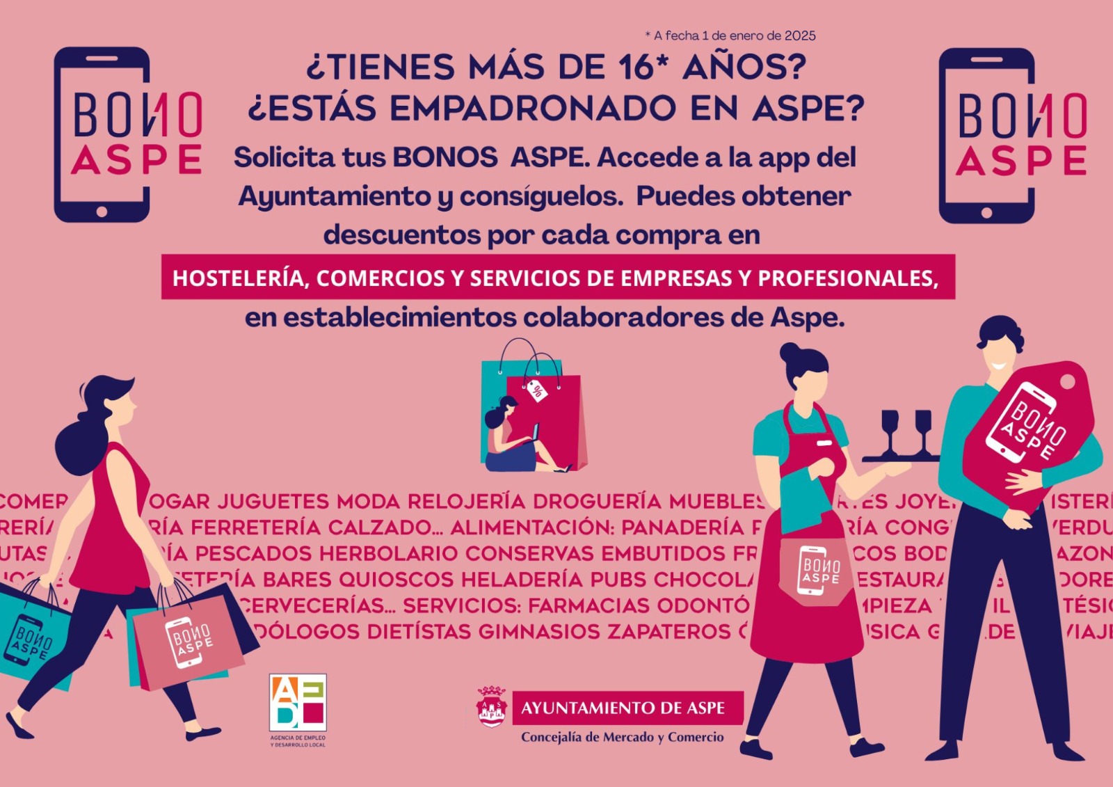 Para ello, el Ayuntamiento de Aspe pondrá a disposición del consumidor bonos de consumo para incentivar la compra en los ESTABLECIMIENTOS locales de Aspe.